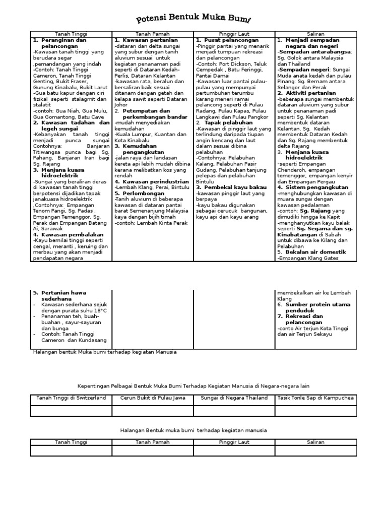 Geografi Tingkatan 1 Potensi Dan Halangan Bentuk Muka Bumi